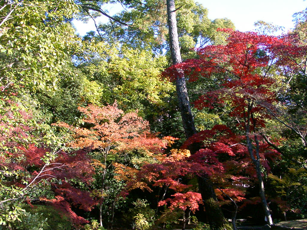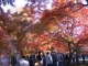 紅葉の木々の下から