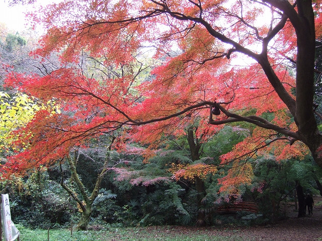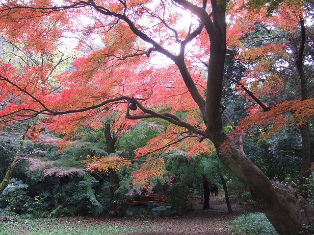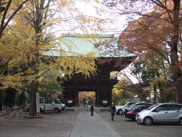 | 門を入ると 真っ赤なもみじが 緑と黄色と赤、綺麗! |